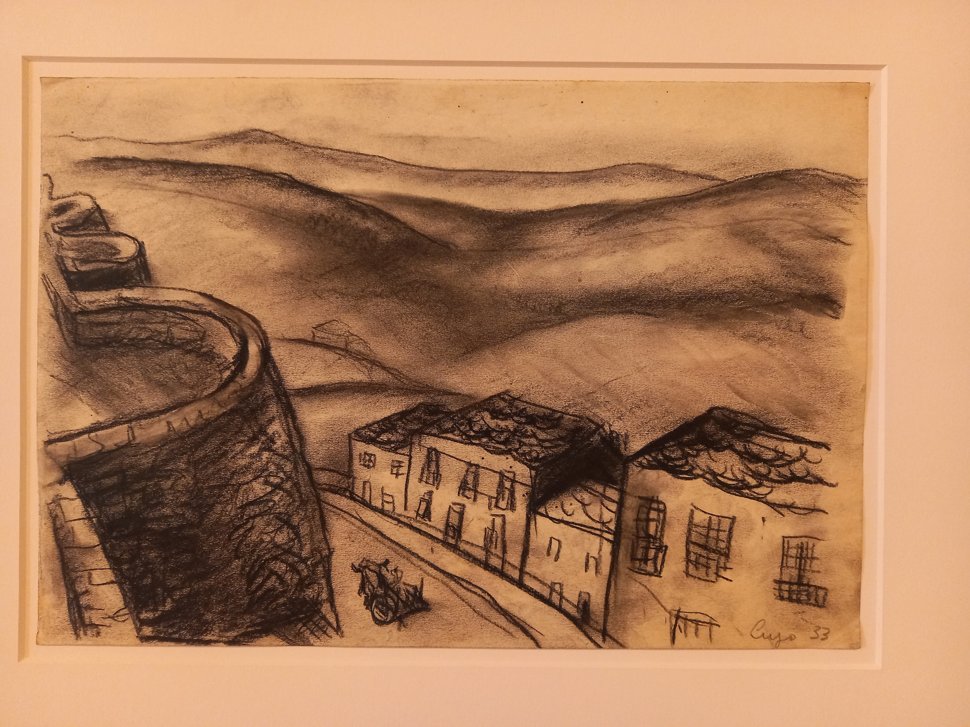 Realizado a base de rotundos e grosos trazos.
