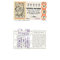 - Décimo da Lotaría Nacional de 1967 co motivo "A Escultura española": imaxe da escena da "Toma de Marbella" no coro baixo da Catedral de Toledo obra de Rodrigo "El alemán". O número do décimo é o 38860 / ANVERSO. Impresión / 38860 / Lotería Nacional / Décima parte del billete para el sorteo del día 25 nde agosto de 1967 / El jefe del servicio (sinatura) / Quinta / 38860 / 24/67 / 5ª / precio 50 pesetas / 2ª serie / La toma de Marbella. Catedral de Toledo Imaxe). / Fca. Nal. de Moneda y Timbre / REVERSO. Impresión / Sorteo del día 25 de agosto de 1967. Sistema tradicional. 8 series con 60.000 billetes de 500 pesetas. (Resumo de premios) / Extracto de la instrucción de Loterías (texto) / Próximo sorteo: 5 de septiembre. Billetes de 2.500 ptas., en décimos de 250 ptas