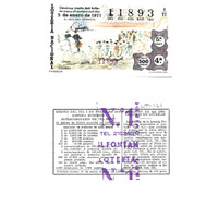 - Décimo "Extraordinario do Día do Neno" da Lotaría Nacional de 1971 co motivo "A tauromaquia": imaxe que representa un "paseíllo". O número do décimo é o 11893 / ANVERSO. Impresión / Lotería Nacional. Décima parte del billete para el sorteo del día 5 de enero de 1971 / El jefe del servicio (sinatura) / 11893 / Cuarta / 11893 / 1/71 / 5ª serie / 4ª / Precio 500 pesetas / Paseillo (imaxe) / Fca. Nal. de Moneda y Timbre / REVERSO. Impresión / Sorteo del día 5 de enero de 1971. Sistema moderno. Extraordinario de "El NIño". 14 series de 50.000 billetes de 5.000 ptas. (Resumo de premios) / Extracto de la instrucción de Loterías (texto) / Próximo sorteo: 15 de enero. Billetes de 1.000 ptas., en décimos de 100 ptas