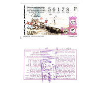 - Décimo "Popular Dobre Sorte" da Lotaría Nacional de 1971 co motivo "A tauromaquia": imaxe que representa o "arrastre triunfal del toro" nunha corrida. O número do décimo é o 54178 / ANVERSO. Impresión / Lotería Nacional. Décima parte del billete para el sorteo del día 3 de noviembre de 1971 / El jefe del servicio (sinatura) / 56178 / 56178 / Quinta / 34/71 / 5ª / 6ª serie / Precio 100 pesetas / Arrastre triunfal del toro (imaxe) / Fca. Nal. de Moneda y Timbre / REVERSO. Impresión / Sorteo del día 3 noviembre 1971. Sistema moderno. Popular doble suerte. 6 series de 100.000 billetes de 1.000 pesetas. (Resumo de premios) / Extracto de la instrucción de Loterías (texto) / Próximo sorteo: 10 de noviembre. Billetes de 500 ptas., en décimos de 50 ptas