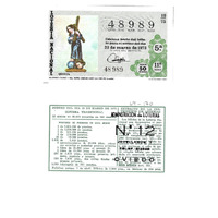 - Décimo da Lotaría Nacional de 1972 co motivo "O neno na arte española": imaxe que representa unha copia da escultura de Alonso Cano "El Niño Jesús con la cruz". O número do décimo é o 48989 / ANVERSO. Impresión / Lotería Nacional / 48989 / Décima parte del billete para el sorteo del día 23 de marzo de 1972 / El jefe del servicio (sinatura) / Quinta / 48989 / 10/72 / 5ª / 11ª serie / Precio 50 pesetas / Alonso Cano - "El Niño Jesús con la cruz" (copia) (imaxe) / Fca. Nal. de Moneda y Timbre / REVERSO. Impresión / Sorteo del día 23 de marzo de 1972. Sistema tradicional. 12 series de 60.000 billetes de 500 pesetas. (Resumo de premios) / Extracto de la instrucción de Loterías (texto) / Próximo sorteo: 7 de abril. Billetes de 2.500 ptas., en décimos de 250 ptas