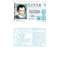 - Décimo da Lotaría Nacional de 1972 co motivo "O neno na arte española": imaxe que representa unha copia da obra de Goya "Retrato de Niño". O número do décimo é o 52924 / ANVERSO. Impresión / Lotería Nacional / 52924 / Décima parte del billete para el sorteo del día 27 de junio de 1972 / El jefe del servicio (sinatura) / Quinta / 52924 / 21/72 / 5ª / 4ª serie / Precio 50 pesetas / Goya - "Retrato de niño" (copia) (imaxe) / Fca. Nal. de Moneda y Timbre / REVERSO. Impresión / Sorteo del día 27 de junio de 1972. Sistema tradicional. 12 series de 60.000 billetes de 500 pesetas. (Resumo de premios) / Extracto de la instrucción de Loterías (texto) / Próximo sorteo: 5 de julio. Billetes de 2.500 ptas., en décimos de 250 ptas