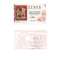 - Décimo da Lotaría Nacional de 1972 co motivo "O neno na arte española": imaxe que representa unha copia dunha porcelana do Bo Retiro. O número do décimo é o 57488 / ANVERSO. Impresión / Lotería Nacional / 57488 / Décima parte del billete para el sorteo del día 26 de julio de 1972 / El jefe del servicio (sinatura) / Sexta / 57488 / 24/72 / 6ª / 10ª serie / Precio 50 pesetas / "Porcelana del Buen Retiro" (copia) (imaxe) / Fca. Nal. de Moneda y Timbre / REVERSO. Impresión / Sorteo del día 26 de julio de 1972. Sistema moderno. 11 series de 80.000 billetes de 500 ptas. (Resumo de premios) / Próximo sorteo: 5 de agosto. Billetes de 1.000 ptas., en décimos de 100 ptas