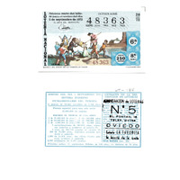 - Décimo "Extraordinario do Turista" da Lotaría Nacional de 1972 co motivo "O neno na arte española": imaxe que representa unha copia do tapiz de Bayeu "El juego de la vaquilla". O número do décimo é o 48363 / ANVERSO. Impresión / Lotería Nacional. Décima parte del billete para el sorteo del día 5 de septiembre de 1972 / El jefe del servicio (sinatura) / Octava serie / 48363 / Sexta / 48363 / 28/72 / 6ª / 8ª serie / Precio 250 pesetas / Bayeu - "El juego de la vaquilla" (copia) (imaxe) / Fca. Nal. de Moneda y Timbre / REVERSO. Impresión / Sorteo del día 5 septiembre 1972. Sistema moderno. Extraordinario del turista. 8 series de 70.000 billetes de 2.500 ptas. (Resumo de premios) / Extracto de la instrucción de Loterías (texto) / Próximo sorteo: 15 septiembre. Billetes de 500 ptas., en décimos de 50 ptas
