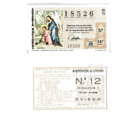- Décimo da Lotaría Nacional de 1972 co motivo "O neno na arte española": imaxe que representa unha copia da obra anónima "Los primeros pasos del Niño Jesús". O número do décimo é o 18526 / ANVERSO. Impresión / Lotería Nacional / 18526 / Décima parte del billete para el sorteo del día 28 de septiembre de 1972 / El jefe del servicio (sinatura) / Quinta / 18526 / 30/72 / 5ª / 14ª serie / Precio 50 pesetas / Anónimo - "Primeros pasos del Niño Jesús" (copia) (imaxe) / Fca. Nal. de Moneda y Timbre / REVERSO. Impresión / Sorteo del día 25 septiembre 1972. Sistema tradicional. 14 series de 60.000 billetes de 500 ptas. (Resumo de premios) / Extracto de la instrucción de Loterías (texto) / Próximo sorteo: 4 de octubre. Billetes de 2.500 ptas., en décimos de 250 ptas