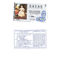 - Décimo da Lotaría Nacional de 1972 co motivo "O neno na arte española": imaxe que representa unha copia da obra de Carlos Luis de Ribera "Retrato de niña". O número do décimo é o 54148 / ANVERSO. Impresión / Lotería Nacional / 54148 / Décima parte del billete para el sorteo del día 5 de diciembre de 1972 / El jefe del servicio (sinatura) / Segunda / 54148 / 38/72 / 2ª / 9ª serie / Precio 50 pesetas / Carlos Luis de Ribera - "Retrato de niña" (copia) (imaxe) / Fca. Nal. de Moneda y Timbre / REVERSO. Impresión / Sorteo del día 5 de diciembre 1972. Sistema moderno. 12 series de 60.000 billetes de 500 ptas. (Resumo de premios) / Extracto de la instrucción de Loterías (texto) / Próximo sorteo: 15 diciembre. Billetes de 500 ptas., en décimos de 50 ptas