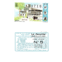 - Décimo da Lotaría Nacional de 1973 co motivo "España medra": imaxe que representa a Casa da Cultura de Tenerife. O número do décimo é o 34716 / ANVERSO. Impresión / (Escudo) / 34716 / Lotería Nacional. Décima parte del billete para el sorteo del día 31 de marzo de 1973 / El jefe del servicio (sinatura) / Segunda / 34716 / 10/73 / 2ª / 7ª serie / Precio 50 pesetas / "Casa de la Cultura". Tenerife (imaxe) / Fca. Nal. de Moneda y Timbre / REVERSO. Impresión / Sorteo del día 31 de marzo de 1973. Sistema moderno. 14 series de 60.000 billñetes de 500 pesetas. (Resumo de premios) / Extracto de la instrucción de Loterías (texto) / Próximo sorteo: 7 de abril. Billetes de 2.500 ptas., en décimos a 250 ptas