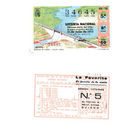 - Décimo da Lotaría Nacional de 1973 co motivo "España medra": imaxe que representa o encoro de Gabriel e Galán en Cáceres. O número do décimo é o 34645 / ANVERSO. Impresión / (Escudo) / 34645 / Lotería Nacional. Décima parte del billete para el sorteo del día 21 de julio de 1973 / El jefe del servicio (sinatura) / Quinta / 34645 / 23/73 / 5ª / 8ª serie / Precio 50 pesetas / "Embalse de Gabriel y Galán". Cáceres (imaxe) / Fca. Nal. de Moneda y Timbre / REVERSO. Impresión / Sorteo del día 21 de julio de 1973. Sistema moderno. 12 series de 80.000 billetes de 500 pesetas. (Resumo de premios) / Extracto de la instrucción de Loterías (texto) / Próximo sorteo: 28 de julio. Billetes de 500 ptas., en décimos a 50 ptas