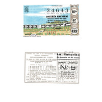 - Décimo "Extraordinario do Turista" da Lotaría Nacional de 1973 co motivo "España medra": imaxe do parador de turismo de Mojácar en Almería. O número do décimo é o 34643 / ANVERSO. Impresión / (Escudo) / OCTAVA SERIE / 34643 / Lotería Nacional. Décima parte del billete para el sorteo del día 5 de septiembre de 1973 / El jefe del servicio (sinatura) / Décima / 34643 / 28/73 / 10ª / 8ª serie / Precio 250 pesetas / "Parador de turismo". Mojácar (imaxe) / Fca. Nal. de Moneda y Timbre / REVERSO. Impresión / Sorteo del día 5 de septiembre 1973. Sistema moderno. Extraordinario del turista. 10 series de 70.000 billetes de 2.500 pesetas. (Resumo de premios) / Extracto de la instrucción de Loterías (texto) / Próximo sorteo: 15 de septiembre. Billetes de 1.000 ptas., en décimos de 100 ptas