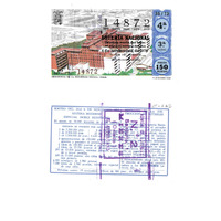 - Décimo "Especial Dobre Reintegro" da Lotaría Nacional de 1973 co motivo "España medra": imaxe que representa a Residencia da Seguridade Social de Oviedo. O número do décimo é o 14872 / ANVERSO. Impresión / (Escudo) / 14872 / Lotería Nacional. Décima parte del billete para el sorteo del día 6 de noviembre de 1978 / El jefe del servicio (sinatura) / Cuarta / 14872 / 35/73 / 4ª / 3ª serie / Precio 150 pesetas / "Residencia de la Seguridad Social". Oviedo (imaxe) / Fca. Nal. de Moneda y Timbre / REVERSO. Impresión / Sorteo del día 6 de noviembre 1973. Sistema moderno. Especial doble reintegro. 10 series de 70.000 billetes de 1.000 pesetas. (Resumo de premios) / Extracto de la instrucción de Loterías (texto) / Próximo sorteo: 15 noviembre. Billetes de 500 ptas., en décimos de 50 ptas