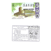 - Décimo da Lotaría Nacional de 1973 co motivo "España medra": imaxe que representa o Museo de Arte Contemporánea de Madrid. O número do décimo é o 34646 / ANVERSO. Impresión / (Escudo) / 34646 / Lotería Nacional. Décima parte del billete para el sorteo del día 5 de diciembre de 1973 / El jefe del servicio (sinatura) / Novena / 34646 / 38/73 / 9ª / 5ª serie / Precio 50 pesetas / "Museo de Arte Contemporáneo". Madrid (imaxe) / Fca. Nal. de Moneda y Timbre / REVERSO. Impresión / Sorteo del día 5 de diciembre de 1973. Sistema moderno. 10 series de 80.000 billetes de 500 pesetas. (Resumo de premios) / Extracto de la instrucción de Loterías (texto) / Próximo sorteo: 15 de diciembre. Billetes de 500 ptas., en décimos de 50 ptas