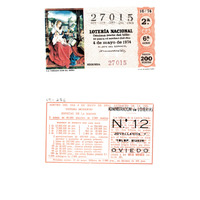 - Décimo "Especial do Día da Nai" da Lotaría Nacional de 1974 co motivo "O libro": imaxe que representa a obra de Bernard van Orley "La Virgen con el niño y San Juanito". O número do décimo é o 27015 / ANVERSO. Impresión / 27015 / Lotería Nacional. Décima parte del billete para el sorteo del día 4 de mayo de 1974 / El jefe del servicio (sinatura) / Segunda / 27015 / 16/74 / 2ª / 6ª serie / Precio 200 pesetas / La Virgen con el Niño (imaxe) / Fca. Nal. de Moneda y Timbre / REVERSO. Impresión /Sorteo del día 4 de mayo de 1974. Sistema moderno. Especial de la Madre. 8 series 80.000 billetes de 2.000 pesetas. (Resumo de premios) / Extracto de la instrución de Loterías (texto) / Próximo sorteo: 11 de mayo. Billetes de 1.000 ptas., en décimos de 100 ptas