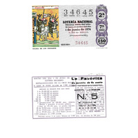 - Décimo "Extraordinario da Cruz Vermella" da Lotaría Nacional de 1974 co motivo "O libro": imaxe que representa unha ilustración da saída dos cruzados. O número do décimo é o 34645 / ANVERSO. Impresión / 34645 / Lotería Nacional. Décima parte del billete para el sorteo del día 1 de junio de 1974 / El jefe del servicio (sinatura) / Segunda / 34645 / 20/74 / 2ª / 7ª serie / Precio 250 pesetas / Salida de los cruzados (imaxe) / Fca. Nal. de Moneda y Timbre / REVERSO. Impresión / Sorteo del día 1 de junio de 1974. Sistema moderno. Extraordinario de la Cruz Roja. 8 series de 80.000 billetes de 2.500 pesetas. (Resumo de premios) / Extracto de la instrucción de Loterías (texto) / Próximo sorteo: 8 de junio. Billetes de 2.000 ptas., en décimos de 200 ptas