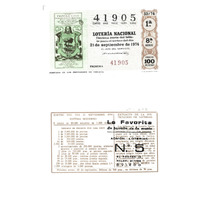 - Décimo da Lotaría Nacional de 1974 co motivo "O libro": imaxe que representa a portada dos "Privilegios de Vizcaya". O número do décimo é o 41905 / ANVERSO. Impresión / 41905 / Lotería Nacional. Décima parte del billete para el sorteo del día 21 de septiembre de 1974 / El jefe del servicio (sinatura) / Primera / 41905 / 33/74 / 1ª / 8ª serie / Precio 100 pesetas / Portada de los Privilegios de Vizcaya (imaxe) / Fca. Nal. de Moneda y Timbre / REVERSO. Impresión / Sorteo del día 21 septiembre 1974. Sistema moderno. 8 series de 80.000 billetes de 1.000 pesetas. (Resumo de premios) / Extracto de la instrucción de Loterías (texto) / Próximo sorteo: 28 de septiembre. Billetes de 500 ptas., en décimos de 50 ptas