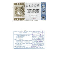 - Décimo da Lotaría Nacional de 1975 co motivo "A filatelia":representación dun selo correo interior de Madrid con cuño de parrilla. O número do décimo é o 17872 / ANVERSO. Impresión / 17872 / Lotería Nacional. Décima parte del billete para el sorteo del día 31 de mayo de 1975 / El jefe del servicio (sinatura) / Quinta / 17872 / 21/75 / 5ª / 12ª serie / Precio 50 pesetas / Sello correo interior de Madrid (con matasellos de parrilla) (imaxe) / Fca. Nal. de Moneda y Timbre / REVERSO. Impresión / Sorteo del día 31 de mayo de 1975. Sistema moderno. 16 series de 80.000 billetes de 500 pesetas. (Resumo de premios) / Extracto de la instrucción de Loterías (texto) / Próximo sorteo: 7 de junio. Billetes de 2.500 ptas., en décimos de 250 ptas