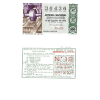 - Décimo da Lotaría Nacional de 1975 co motivo "A filatelia": imaxe que representa o proceso do transferido do orixinal. O número do décimo é o 30436 / ANVERSO. Impresión / 30436 / Lotería Nacional. Décima parte del billete para el sorteo del día 16 de agosto de 1975 / El jefe del servicio (sinatura) / Segunda fracción / 30436 / 32/75 / 2ª sección / 5ª serie / Precio 100 pesetas / El transferido del original (imaxe) / Fca. Nal. de Moneda y Timbre / REVERSO. Impresión / Sorteo del día 16 agosto de 1975. Sistema moderno. 12 series de 80.000 billetes de 1.000 pesetas. (Resumo de premios) / Extracto de la instrucción de Loterías (texto) / Próximo sorteo: 23 de agosto. Billetes de 1.000 ptas., en décimos de 100 ptas