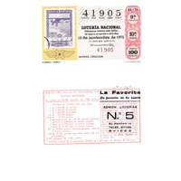 - Décimo da Lotaría Nacional de 1975 co motivo "A filatelia": representación dun selo conmemorativo do correo aéreo. O número do décimo é o 41905 / ANVERSO. Impresión / 41905 / Lotería Nacional. Décima parte del billete para el sorteo del día 15 de noviembre de 1975 / El jefe del servicio (sinatura) / Novena fracción / 41905 / 44/75 / 9ª fracción / 10ª serie / Precio 100 pesetas / Correo aéreo (imaxe) / Fca. Nal. de Moneda y Timbre / REVERSO. Impresión / Sorteo del día 15 de noviembre 1975. Sistema moderno. 10 series de 80.000 billetes de 1.000 pesetas. (Resumo de premios) / Extracto de la instrucción de Loterías (texto) / Próximo sorteo: 22 de noviembre. Billetes de 1.000 ptas., en décimos de 100 ptas
