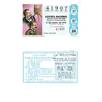 - Décimo da Lotaría Nacional de 1976 co motivo "Sistemas de comunicación": imaxe que representa os irmáns Lumiere, inventores do cine. O número do décimo é o 41907 / ANVERSO. Impresión / 41907 / Lotería Nacional. Décima parte del billete para el sorteo del día 31 de enero de 1976 / El jefe del servicio (sinatura) / Sexta fracción / 41907 / 4/76 / 6ª fracción / 5ª serie / Precio 50 pesetas / El cine. Los hermanos Lumière (imaxe) / Fca. Nal. de Moneda y Timbre / REVERSO. Impresión / Sorteo del día 31 de enero de 1976. Sistema moderno. 18 series de 80.000 billetes de 500 pesetas. (Resumo de premios) / Extracto de la instrucción de Loterías (texto) / Próximo sorteo: 7 de febrero. Billetes de 1.000 ptas., en décimos de 100 ptas