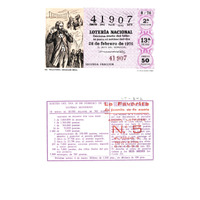 - Décimo da Lotaría Nacional de 1976 co motivo "Sistemas de comunicación": imaxe que representa unha imaxe de Alexander Graham Bell, inventor do teléfono. O número do décimo é o 41907 / ANVERSO. Impresión / 41907 / Lotería Nacional. Décima parte del billete para el sorteo del día 28 de febrero de 1976 / El jefe del servicio (sinatura) / Segunda fracción / 41907 / 8/76 / 2ª fracción / 13ª serie / Precio 50 pesetas / El teléfono, Graham Bell (imaxe) / Fca. Nal. de Moneda y Timbre / REVERSO. Impresión / Sorteo del día 28 de febrero de 1976. Sistema moderno. 18 series de 80.000 billetes de 500 pesetas. (Resumo de premios) / Extracto de la instrucción de Loterías (texto) / Próximo sorteo: 6 de marzo. Billetes de 1.000 ptas., en décimos de 100 ptas