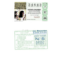 - Décimo da Lotaría Nacional de 1976 co motivo "Sistemas de comunicación": imaxe que representa a escritura xeroglífica. O número do décimo é o 34643 / ANVERSO. Impresión / 34643 / Lotería Nacional. Décima parte del billete para el sorteo del día 20 de marzo de 1976 / El jefe del servicio (sinatura) 34643 / Séptima fracción / 11/76 / 7ª fracción / 10ª serie / Precio 100 pesetas / Escritura jeroglífica (imaxe) / Fca. Nal. de Moneda y Timbre / REVERSO. Impresión / Sorteo del día 20 de marzo de 1976. Sistema moderno. 13 series de 80.000 billetes de 1.000 pesetas. (Resumo de premios) / Extracto de la instrucción de Loterías (texto) / Próximo sorteo: 27 de marzo. Billetes de 500 ptas., en décimos de 50 ptas.