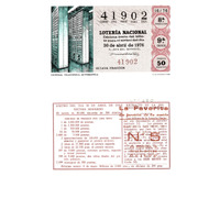 - Décimo da Lotaría Nacional de 1976 co motivo "Sistemas de comunicación": imaxe que representa a Central Telefónica Automática. O número do décimo é o 41902 / ANVERSO. Impresión / 41902 / Lotería Nacional. Décima parte del billete para el sorteo del día 30 de abril de 1976 / El jefe del servicio (sinatura) / Octava fracción / 41902 / 16/76 / 8ª fracción / 9ª serie / Precio 50 pesetas / Central Telefónica Automática (imaxe) / Fca. Nal. de Moneda y Timbre / REVERSO. Impresión / Sorteo del día 30 de abril de 1976. Sistema moderno. 18 series de 80.000 billetes de 500 pesetas. (Resumo de premios) / Extracto de la instrucción de Loterías (texto) / Próximo sorteo: 8 de mayo. Billetes de 2.000 ptas., en décimos de 200 ptas