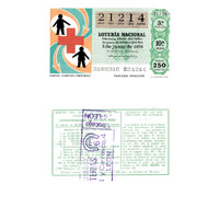 - Décimo "Extraordinario da Cruz Vermella" da Lotaría Nacional de 1976 co motivo "Sistemas de comunicación": imaxe que representa un cartel dunha campaña da Cruz Vermella. O número do décimo é o 21214 / ANVERSO. Impresión / 21241 / Lotería Nacional. Décima parte del billete para el sorteo del día 5 de junio de 1976 / El jefe del servicio (sinatura) / 2160310 - 021214 / 21/76 / 3ª fracción / 10ª serie / Precio 250 pesetas / Cartel. Campaña Cruz Roja (imaxe) / Tercera fracción / Fca. Nal. de Moneda y Timbre / REVERSO. Impresión / Sorteo del día 5 de junio de 1976. Sistema moderno. Extraordinario de la Cruz Roja. 10 series de 80.000 billetes de 2.500 pesetas. (Resumo de premios) / Extracto de la instrucción de Loterías (texto) / Próximo sorteo: 12 de junio. Billetes de 1.000 ptas., en décimos de 100 ptas