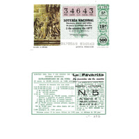 - Décimo "Extraordinario do Día do Neno" da Lotaría Nacional de 1977 co motivo "As provincias españolas": imaxe que representa o grupo escultórico da Epifanía, de Jacques Perut, do claustro da Catedral de Santa María de Pamplona, Navarra, formado por un Rei Mago, á esquerda, e a Virxe e o Neno, á dereita. O número do décimo é o 34643 / ANVERSO. Impresión / 34643 / Lotería Nacional. Décima parte del billete para el sorteo del día 5 de enero de 1977 / El jefe del servicio (sinatura) / 0170519 - 034643 / 1/77 / 5ª fracción / 19ª serie / Precio 500 pesetas / Navarra. La Epifanía (imaxe) / Quinta fracción / Fca. Nal. de Moneda y Timbre / REVERSO. Impresión / Sorteo del día 5 de enero de 1977. Sistema moderno. Extraordinario de "El Niño". 25 series de 80.000 billetes de 5.000 pesetas. (Resumo de premios) / Extracto de la instrucción de Loterías (texto) / Próximo sorteo: 15 de enero. Billetes de 2.000 ptas., en décimos de 200 ptas