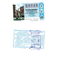 - Décimo "Especial de San Valentín" da Lotaría Nacional de 1977 co motivo "As provincias españolas": imaxe que representa a Praza do Torico en Teruel. O número do décimo é o 58025 / ANVERSO. Impresión / 58025 / Lotería Nacional. Décima parte del billete para el sorteo del día 12 de febrero de 1977 / El jefe del servicio (sinatura) / 0670402 - 058025 / 6/77 / 4ª fracción / 2ª serie / Precio 200 pesetas / Teruel. Plaza del Torico (imaxe) / Cuarta fracción / Fca. Nal. de Moneda y Timbre / REVERSO. Impresión / Sorteo del día 12 de febrero de 1977. Sistema moderno. Especial de San Valentín. 14 series de 80.000 billetes de 2.000 pesetas. (Resumo de premios) / Extracto de la instrucción de Loterías (texto) / Próximo sorteo: 19 de febrero. Billetes de 1.000 ptas., en décimos de 100 ptas