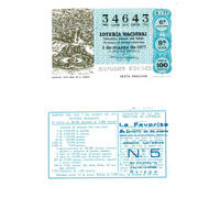 - Décimo da Lotaría Nacional de 1977 co motivo "As provincias españolas": imaxe que representa unha vista xeral da cidade de Albacete. O número do décimo é o 34643 / ANVERSO. Impresión / 34643 / Lotería Nacional. Décima parte del billete para el sorteo del día 5 de marzo de 1977 / El jefe del servicio (sinatura) / 0970609 - 034643 / 9/77 / 6ª fracción / 9ª serie / Precio 100 pesetas / Albacete. Vista gral. de la ciudad (imaxe) / Sexta fracción / Fca. Nal. de Moneda y Timbre / REVERSO. Impresión / Sorteo del día 5 de marzo de 1977. Sistema moderno. 17 series de 80.000 billetes de 1.000 pesetas. (Resumo de premios) / Extracto de la instrucción de Loterías (texto) / Próximo sorteo: 12 de marzo. Billetes de 2.000 ptas., en décimos de 200 ptas