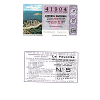 - Décimo "Extraordinario da Cruz Vermella" da Lotaría Nacional de 1977 co motivo "As provincias españolas": imaxe que representa o Pazo da Madalena de Santander, Cantabria. O número do décimo é o 41904 / ANVERSO. Impresión / 41904 / Lotería Nacional. Décima parte del billete para el sorteo del día 4 de junio de 1977 / El jefe del servicio (sinatura) / 2170103 - 041904 / 21/77 / 1ª fracción / 3ª serie / Precio 250 pesetas / Santander. Palacio de la Magdalena (imaxe) / Primera fracción / Fca. Nal. de Moneda y Timbre / REVERSO. Impresión / Sorteo del día 4 de junio de 1977. Extraordinario de la Cruz Roja. Sistema moderno. 12 series de 80.000 billetes de 2.500 pesetas. (Resumo de premios) / Extracto de la instrucción de Loterías (texto) / Próximo sorteo: 11 de junio. Billetes de 1.000 ptas., en décimos de 100 ptas