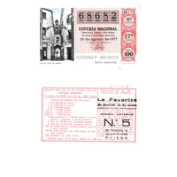 - Décimo da Lotaría Nacional de 1977 co motivo "As provincias españolas": imaxe que representa o Pasaxe de "Chinitas" en Málaga. O número do décimo é o 68682 / ANVERSO. Impresión / 68682 / Lotería Nacional. Décima parte del billete para el sorteo del día 20 de agosto de 1977 / El jefe del servicio (sinatura) / 3270617 - 068682 / 32/77 / 6ª fracción / 17ª serie / Precio 100 pesetas / Málaga. Pasaje de Chinitas (imaxe) / Sexta fracción / Fca. Nal. de Moneda y Timbre / REVERSO. Impresión / Sorteo del día 20 de agosto de 1977. Sistema moderno. 17 series de 80.000 billetes de 1.000 pesetas. (Resumo de premios) / Extracto de la instrucción de Loterías (texto) / Próximo sorteo: 27 de agosto. Billetes de 1.000 ptas., en décimos de 100 ptas