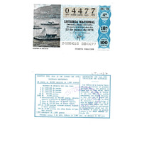 - Décimo da Lotaría Nacional de 1978 co motivo "Os Recursos naturais": imaxe que representa criadeiros de moluscos. O número do décimo é o 04477 / ANVERSO. Impresión / 04477 / Lotería Nacional. Décima parte del billete para el sorteo del día 23 de junio de 1978 / El jefe del servicio (sinatura) / 2480418 - 004477 / 24/78 / 4ª fracción / 18ª serie / Precio 100 pesetas / Criaderos de moluscos (imaxe) / Cuarta fracción / Fca. Nal. de Moneda y Timbre / REVERSO. Impresión / Sorteo del día 23 de junio de 1978. Sistema moderno. 18 series de 80.000 billetes de 1.000 pesetas. (Resumo de premios) / Extracto de la instrucción de Loterías (texto) / Próximo sorteo: 1 de julio. Billetes de 2.000 ptas., en décimos de 200 ptas