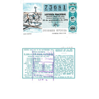 - Décimo da Lotaría Nacional de 1978 co motivo "Os Recursos naturais": imaxe que representa unhas salinas marítimas. O número do décimo é o 73681 / ANVERSO. Impresión / 73681 / Lotería Nacional. Décima parte del billete para el sorteo del día 30 de septiembre de 1978 / El jefe del servicio (sinatura) / 3880109 - 073681 / 38/78 / 1ª fracción / 9ª serie / Precio 100 pesetas / Salinas marítimas (imaxe) / Primera fracción / Fca. Nal. de Moneda y Timbre / REVERSO. Impresión / Sorteo del día 30 de septiembre 1978. Sistema moderno. 18 series de 80.000 billetes de 1.000 pesetas. (Resumo de premios) / Extracto de la instrucción de Loterías (texto) / Próximo sorteo: 7 de octubre. Billetes de 2.000 ptas., en décimos de 200 ptas
