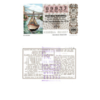 - Décimo "Especial de Outono" da Lotaría Nacional de 1978 co motivo "Os Recursos naturais": imaxe que representa un río navagable. O número do décimo é o 09937 / ANVERSO. Impresión / 09937 / Lotería Nacional. Décima parte del billete para el sorteo del día 4 de noviembre de 1978 / El jefe del servicio (sinatura) / 4380211 - 009937 / 43/78 / 2ª fracción / 11ª serie / Precio 200 pesetas / Río navegable (imaxe) / Segunda fracción / Fca. Nal. de Moneda y Timbre / REVERSO. Impresión / Sorteo del día 4 de noviembre de 1978. Sistema moderno. Especial de otoñó. 14 series de 80.000 billetes de 2.000 pesetas. (Resumo de premios) / Extracto de la instrucción de Loterías (texto) / Próximo sorteo: 11 de noviembre. Billetes de 2.000 ptas., en décimos de 200 ptas