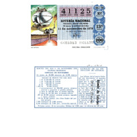 - Décimo "Especial de Novembro" da Lotaría Nacional de 1978 co motivo "Os Recursos naturais": imaxe que representa o gas natural. O número do décimo é o 41125 / ANVERSO. Impresión / 41125 / Lotería Nacional. Décima parte del billete para el sorteo del día 11 de noviembre de 1978 / El jefe del servicio (sinatura) / 4481013 - 041125 / 44/78 / 10ª fracción / 13ª serie / Precio 200 pesetas / Gas natural (imaxe) / Décima fracción / Fca. Nal. de Moneda y Timbre / REVERSO. Impresión / Sorteo del día 11 de noviembre 1978. Sistema moderno. Especial de noviembre. 14 series de 80.000 billetes de 2.000 pesetas. (Resumo de premios) / Extracto de la instrucción de Loterías (texto) / Próximo sorteo: 18 de noviembre. Billetes de 1.000 ptas., en décimos de 100 ptas