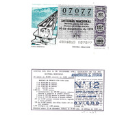 - Décimo da Lotaría Nacional de 1978 co motivo "Os Recursos naturais": imaxe que representa unha central mareomotriz. O número do décimo é o 07077 / ANVERSO. Impresión / 07077 / Lotería Nacional. Décima parte del billete para el sorteo del día 16 de diciembre de 1978 / El jefe del servicio (sinatura) / 4981015 - 007077 / 49/78 / 10ª fracción / 15ª serie / Precio 100 pesetas / Central mareomotriz (imaxe) / Décima fracción / Fca. Nal. de Moneda y Timbre / REVERSO. Impresión / Sorteo del día 16 de diciembre 1978. Sistema moderno. 17 series de 80.000 billetes de 1.000 pesetas. (Resumo de premios) / Extracto de la instrucción de Loterías (texto) / Próximo sorteo: 22 de diciembre. Billetes de 20.000 ptas., en décimos de 2.000 ptas