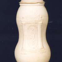 Bote de farmacia de cor branco-cremoso, de forma cilíndrica e pequena angostura na parte central, o que facilitaba o seu manexo. A boca remata nun rebordo ou labio e é de introdución interna.
