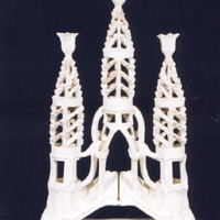 - Candeeiro de tres brazos en forma de torrecillas caladas de influencia gótica, unidas entre si cun cordón, atado, que remata simetricamente en dúas borlas. As torres rematan en tres tulipáns que suxeitarían as velas.