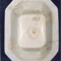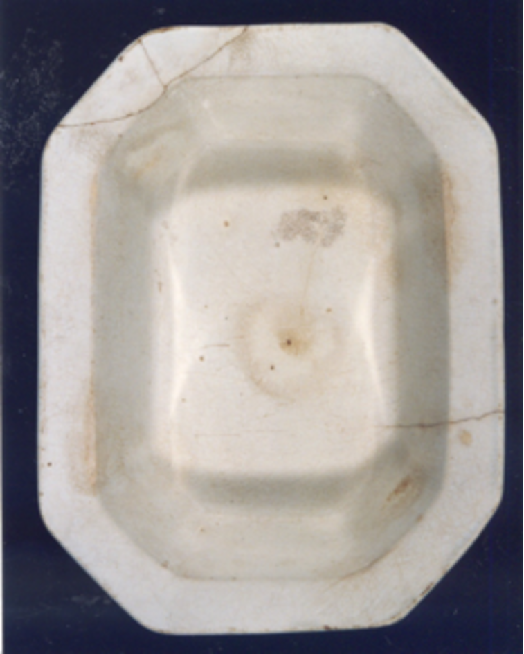 Fonte cuadrilonga, fonda, de cor branca cremosa.