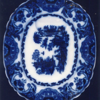 No centro o tema principal, que procede do "willow patteru" inglés: viñeta onde se reproduce un xardín imaxinario chinesco con pavillóns, rocallas, palmeiras, illotes e outros elementos organizados ao redor dun río en zig-zag.