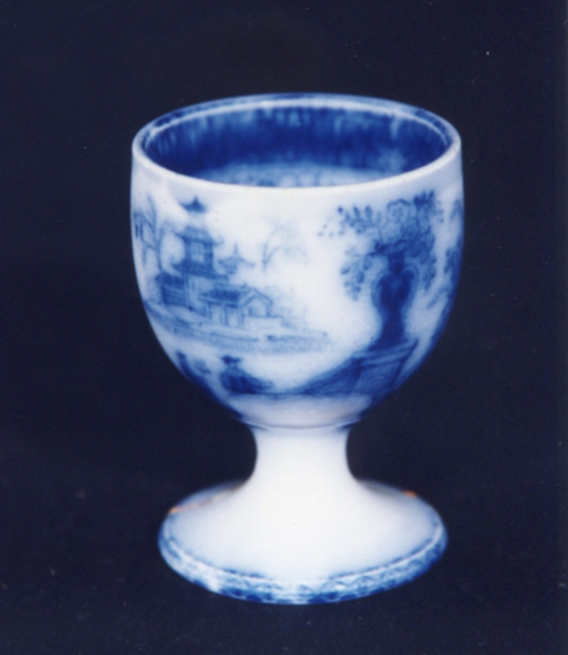 O tema principal ocupa todo o bandullo da copa: paisaxe imaxinaria chinesca que deriva do modelo inglés "willow". Representación de marcado carácter escenográfico no que se representa un xardín con dous personaxes, floreiro, escalinatas, pavillóns, salgueiros e palmeiras. O elemento oriental occidentalizouse. Rebezo con orla esvaída de empechado e base fino fito con orla xeométrica.