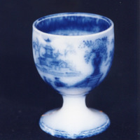 Oveira tipo copa. Decoración estampada en azul cobalto "fundido".