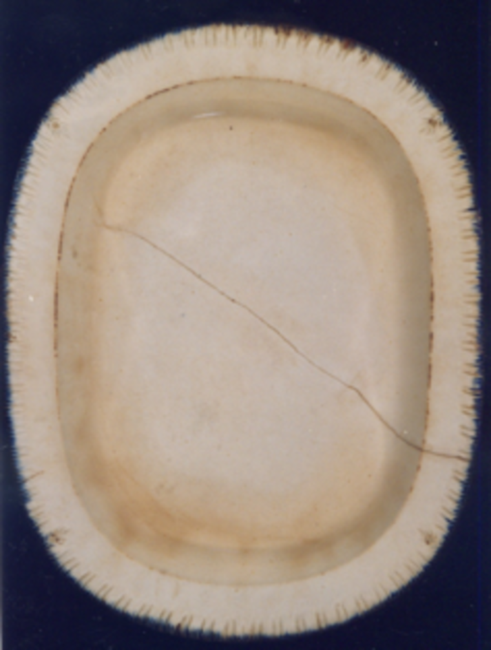 - Fonte ovalada fonda, con bordo estriado alternando con poliñas estilizadas. Filete repasado a pincel en colo azul escuro (azul cobalto).