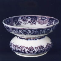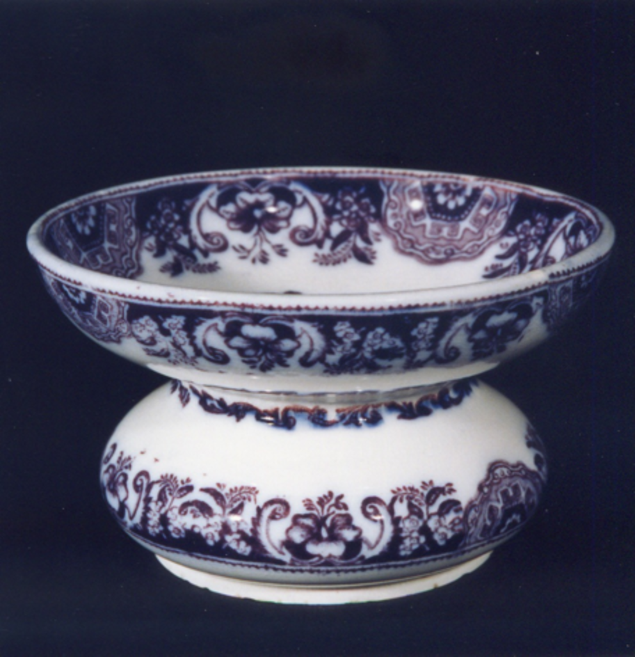 Cuspideira de man de forma bulbosa decorada con estampados en azul-violeta nítido.
