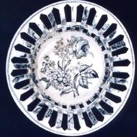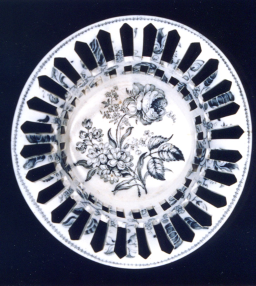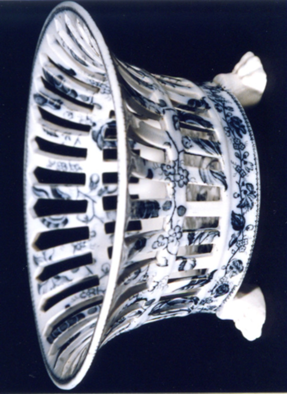 Froiteiro calado con tres pés en forma de pouta de felino. Presenta decoración estampada en azul cobalto.