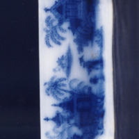 Xaboeira de forma rectangular (só o recipiente). Decoración estampada en azul cobalto.