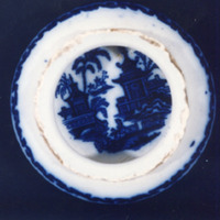 O tema principal, localizado no fondo do recipiente, é unha paisaxe ideal, tipo chinesco. Completa a decoración, no exterior, cenefa con elementos chinescos e orla con roleos.