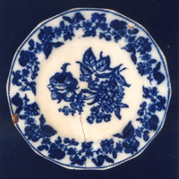 Prato chairo de bordo poligonal e decoración estampada en azul cobalto difuminado.