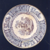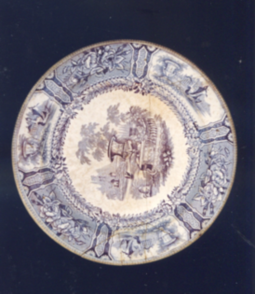 Prato chairo de bordo liso e decoración estampada en violeta.