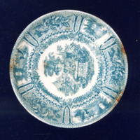 Prato pequeno de bordo liso con decoración estampada en verde.